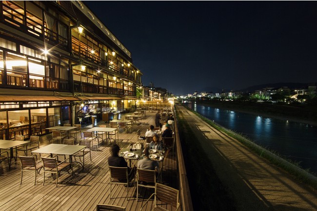 平成20年に“新旧が融合したジャパニーズモダン”をコンセプトに、フレンチレストランへと生まれ変わりました。このように大規模な建造物が鴨川沿いに現存し、今もなお利用されていることや、建造物そのものの歴史的・芸術的価値が評価され、2012年4月21日、文化庁より登録有形文化財(建造物)に登録されました。夏には京都の風物詩「川床」(5月~9月)も開催され、京野菜などの地元の食材を使ったお料理と、目の前を流れる鴨川、東山の稜線に四季折々を感じながら愉しむひとときをお過ごしいただけます。