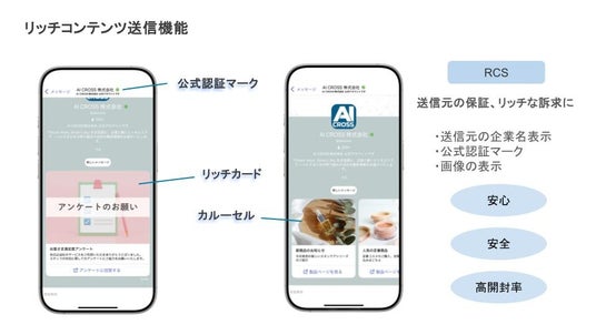 AI CROSS株式会社は、法人向けのメッセージングサービスとAIを活用したソリューションを提供する企業です。主力サービスには、SMS配信サービス「絶対リーチ!SMS」、RCS配信プラットフォーム「絶対リーチ!RCS」およびAIを活用した様々なデータ分析サービス「Deep Predictor」などがあり、企業の業務効率化と顧客との円滑なコミュニケーションを支援しています。
