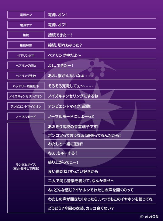 イヤホンの起動/終了や端末との接続状況をお知らせする「ボイスガイダンス」と、いつでも好きなタイミングで聴ける「ランダムボイス」を搭載し、メンバーそれぞれの言葉で、あなたの音楽ライフに寄り添います!