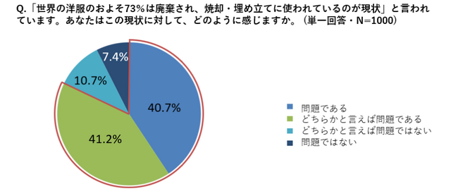 【「世界の洋服のおよそ73%は廃棄され、焼却・埋め立てに使われているという現状」に80%以上が問題を感じている】