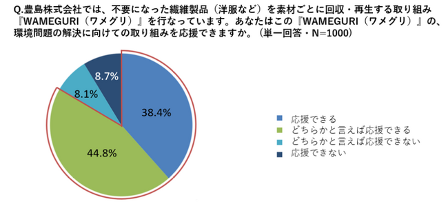 豊島株式会社のサーキュラーエコノミーに向けての取り組み『WAMEGURI(ワメグリ)』については83.2%が応援できると回答