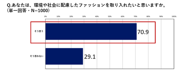 環境や社会に配慮したファッションを取り入れたいと考えている人は約70%にのぼりました。