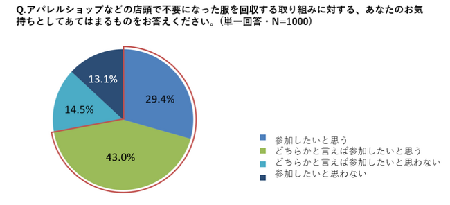 【不要になった服を回収する取り組みに対して70%以上が「参加したい」と回答】