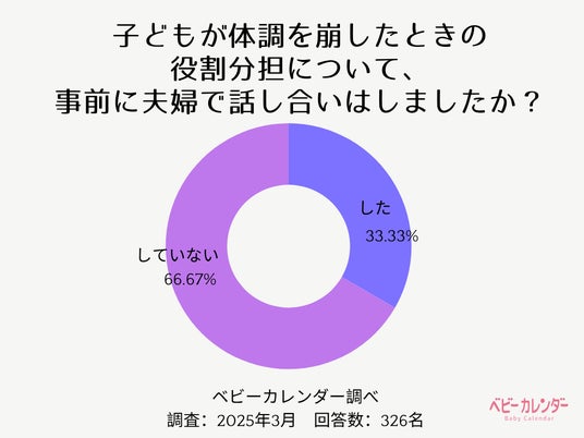 専門家から直接アドバイスを受けられる日本最大(※)の育児支援サイトを運営する株式会社ベビーカレンダー(旧社名:株式会社クックパッドベビー、本社:東京都渋谷区、代表取締役:安田啓司、以下「ベビーカレンダー」https://baby-calendar.jp/)は、体調不良時の夫婦の役割分担に関する意識調査を実施しました。
