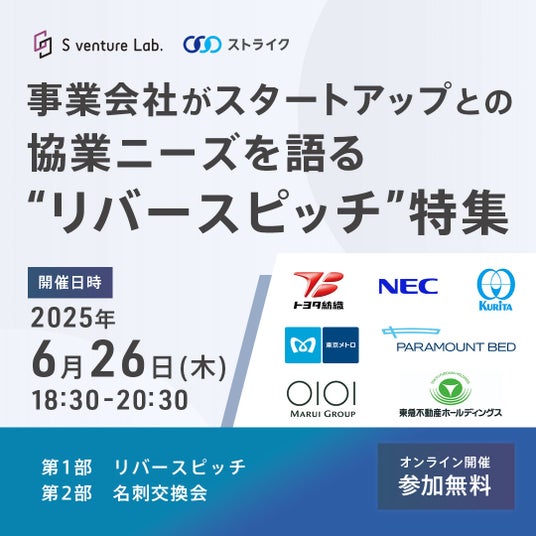 株式会社ストライク (本社: 東京都千代田区、代表取締役社長: 荒井邦彦) がスタートアップと事業会社の 新たな連携を生み出すためのイベント『 S venture Lab.』を開催いたします。