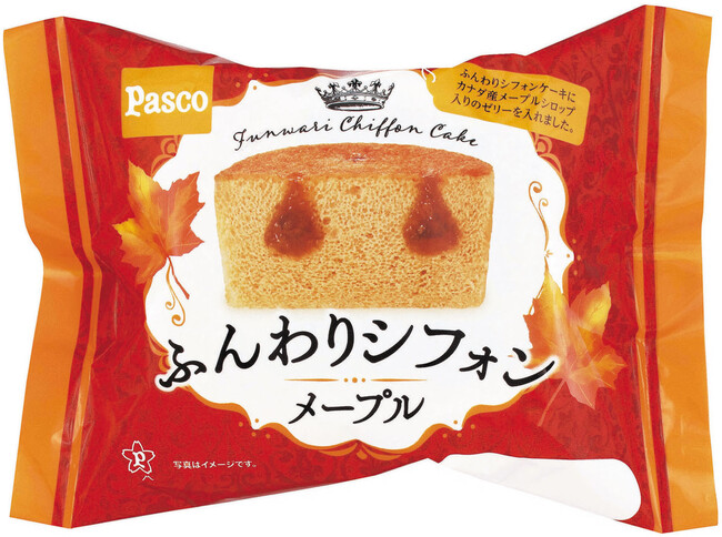 メープルシロップ入りの、ふわふわなシフォンケーキに、メープルシロップ入りのゼリーを3ヶ所に入れました。 メープルの香りや味わいを存分に楽しんでいただけるシフォンケーキです。