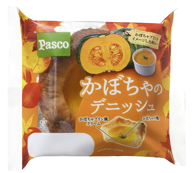 デニッシュ生地にかぼちゃプリン風クリームを絞り、かぼちゃの種をトッピングして焼き上げました。