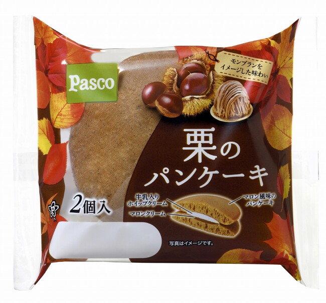 マロン風味のパンケーキに、マロンクリームと牛乳入りホイップクリームをはさみました。