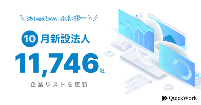 「データとテクノロジーで、ビジネスを加速させる。」をミッションに掲げ、日本全国500万社以上の企業データを基盤に営業の効率化を支援する「SalesNow」を展開してきた株式会社QuickWork(本社:東京都渋谷区、代表取締役:村岡功規、以下「QuickWork」)は、日本全国500万社以上の企業情報を網羅した日本最大級のデータベースを誇る「SalesNowDB」において、10月新設法人11,746社の情報を更新したことをお知らせします。