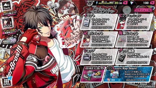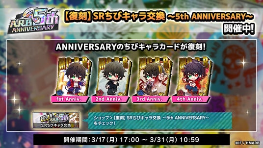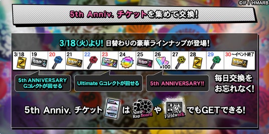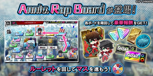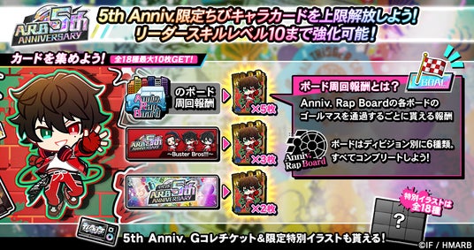 ゲームアプリ内では期間中、5th ANNIVERSARYを記念した特設ページが登場!イベント「5th ANNIVERSARY」開催のほか、新たに登場した「Anniv. Rap Board」や、ログインボーナス、限定ミッションなどの特別なキャンペーンを行っております。
