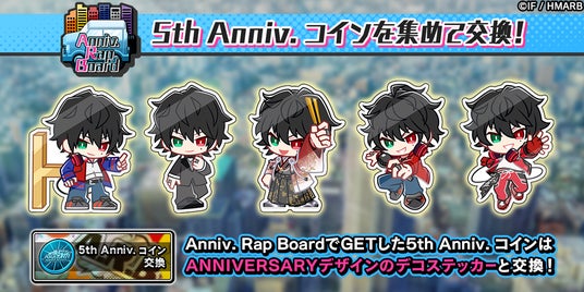 獲得した「5th Anniv. コイン」はANNIVERSARYデザインのちびキャラデコステッカーと交換できます。
