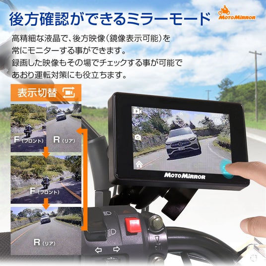 良く見える高精細な液晶で、後方映像(鏡像表示可能)を常にモニターする事ができます。録画した映像もその場でチェックする事が可能!