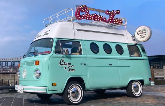グッズトラック「Chara★Van」(キャラヴァン)が「にぎわいSTAGE」に登場!『みずいろ ハローキティ ポップアップストア』の一部商品を販売いたします。ミントグリーンのワーゲンバスを目印に、ぜひお立ち寄りください♪