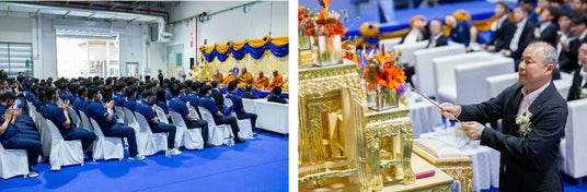 本式典はSSCT従業員や積水化学の関係者、SSCT設立に携わったOB・OGなど総勢138名が出席して、バラモン式典から始まり、続いて仏教式典を執り行い、出席者一同、これまでの10年間への感謝を表すとともに、関係者の安全と健康、そして今後のさらなる発展、成長を祈念しました。