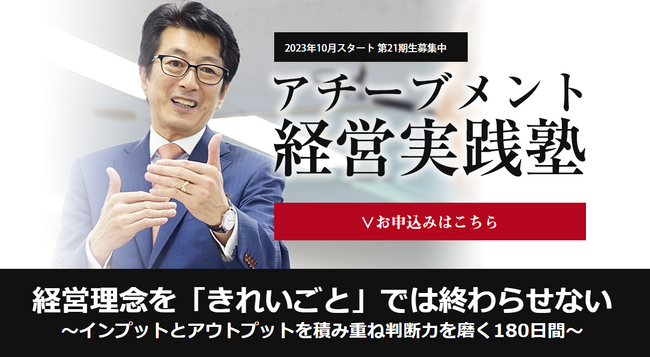「人的資本経営」が注目されるようになり、様々な企業が取り組みを進めている。アチーブメントでは35年間7,000名を超える中小企業経営者教育に従事してきたノウハウを活かし、10年前から全6回、180日間にわたる中小企業経営者向けの「経営実践塾」を開催。7月19日~20日には、第4講目「経営実践会議」が行われ、100名の経営者が参加し、現状と理想に向き合いました。