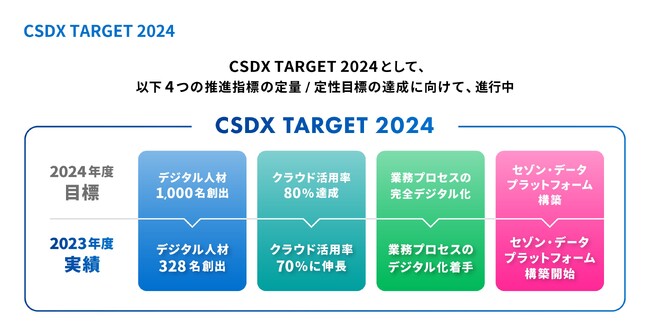 「CSDX TARGET 2024」として、2024年度中に、以下4つの推進指標の定量・定性目標の達成を 目指しています。