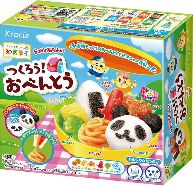 「ポッピンクッキン つくろう!おべんとう」は、粉と水だけで本物そっくりなお弁当のお菓子ができます。作れるのはブロッコリー、たまごやき、タコウインナー、からあげ、ナポリタン、おにぎり、パンダおにぎりの7種類です。具材ができあがったら、おべんとうシートに盛り付けて完成です。