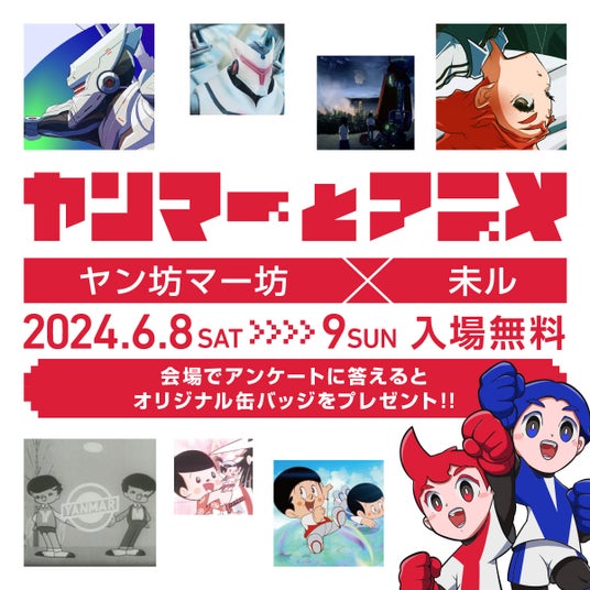 アニメ・ドラマなど「推し」コンテンツが集う関西最大級の推しイベント「ちゃやまち推しフェスティバル2024」の実行委員会として「ヤンマーとアニメ ‐ヤン坊マー坊×未ル‐ 」を開催します。ヤン坊マー坊の新デザインや、制作中の当社オリジナルアニメ「未ル」のロボットデザインの展示を行います。また、会場でアンケートに回答いただいた方には、オリジナル缶バッジをプレゼントします※。