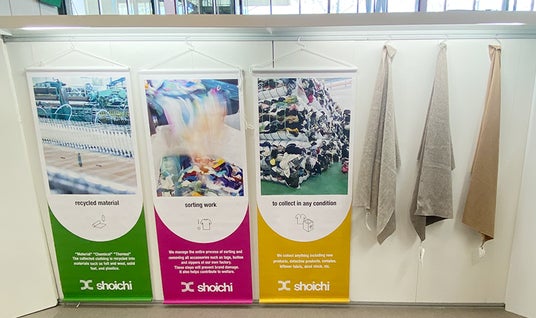 shoichiはアパレルに限らずシューズ・バッグなどの雑貨も細かく裁断して綿の状態に戻す独自のリサイクル技術を保有。