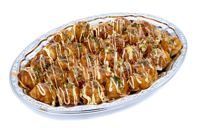 一口で頬張りきれないほど大きく、食べ応え十分なたこ焼き。キャベツやタマネギ、たまご、揚げ玉、紅ショウガなどの各種具材をバランスよく配合し、かつおと昆布のうまみが効いた、中がとろ~りとした食感に。何個食べても飽きのこない味わいです。