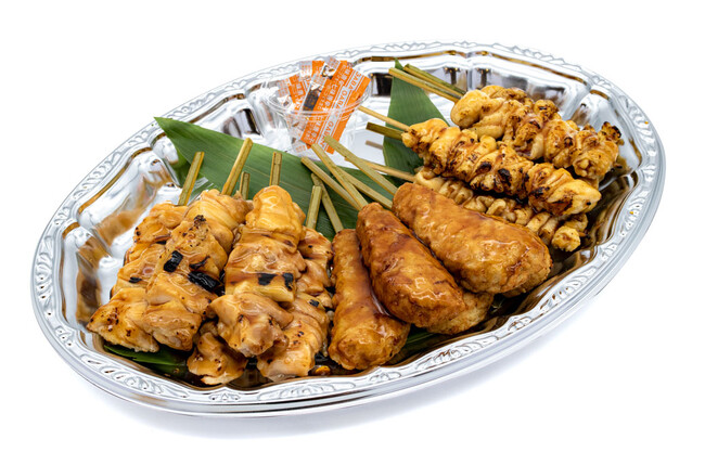 ジューシーな鶏モモ肉とネギのシャキシャキ感が相性抜群なねぎま串、余分な脂を削ぎ落とし炭火で香ばしく焼き上げた鳥皮串、柔らかジューシーな生地に軟骨のコリコリとした食感が美味しいつくね串の3種串。炭火で香ばしく焼き上げ、醤油ベースの甘口ダレで味付けした本格的な味わいです。