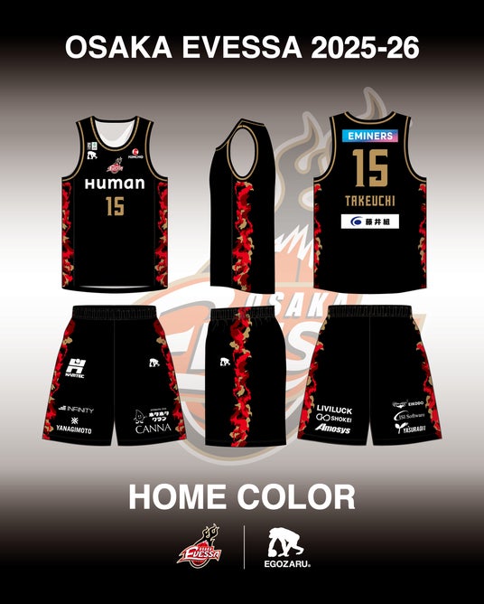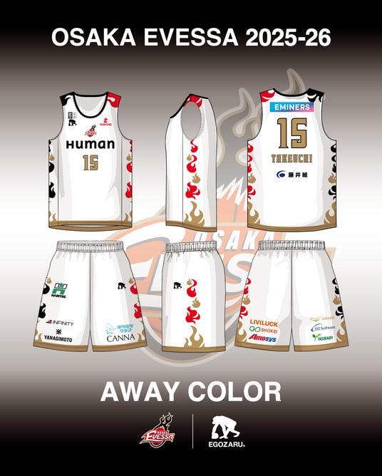 2025-26シーズンもオフィシャルサプライヤー契約を締結したEGOZARU(エゴザル)製のユニフォームを着用します。併せて、大阪エヴェッサのオンラインショップでオーセンティックユニフォーム受注販売を開始します。