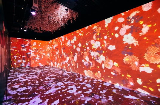 立体映像空間で鮮やかな浮世絵の世界に没入できる体感型デジタルアートミュージアム。有名浮世絵師による細やかなしぐさや喜怒哀楽といった感情を繊細に表現した、多彩な美人たちの美人画と花の共演。