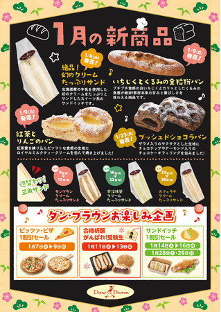 焼きたてパンの店「ダン・ブラウン」から、4つの商品を新たにラインアップします。寒さが増すこの時期に、温かい飲み物によく合う商品を揃えます。ぜひご賞味ください。