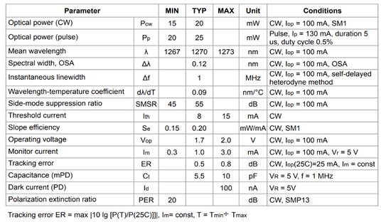 ・レーザーダイオードテレコム 1270 ‒ 1650 nm(型番:LD4B-1270-DFB-10G-15)
