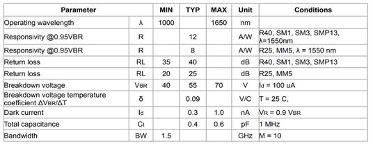 ・フォトダイオード PIN、APD、PIN-TIA、APD-TIA(型番:APD4B-29-1.5G-W)