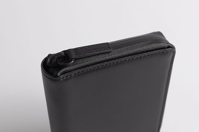YKK製の止水ファスナー「AquaGuard(R)NATULON(R)」を装備しており、スコッチガード(TM)皮革保護剤で加工したレザーが持つ高い撥水性と相まって、内部の水濡れへの対策は万全です。街中やアウトドアで急に雨が降っても、大切な紙幣や貴重品を守ります。