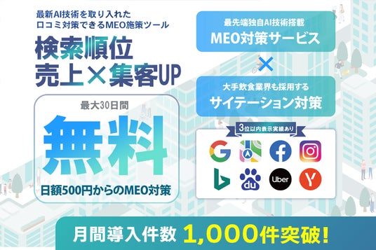 最新AI技術を活用したMEO対策サービス「InfoBiz」、月間申込件数1,000件突破のお知らせ