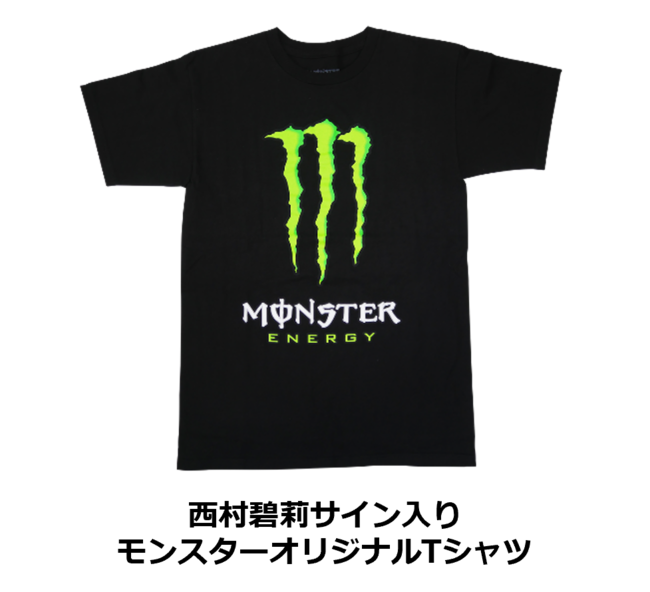 賞品 :西村碧莉サイン入り モンスターオリジナルTシャツ(男性用Mサイズ) …抽選で5名様