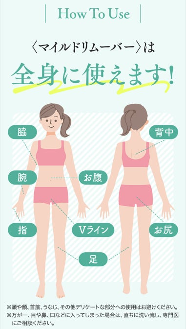 POINT 2 :肌のことを考え抜いたスキンケア発想のムダ毛リムーバーデリケートな肌を想い、保湿成分92.7%と高配合のスキンケア発想の処方。やさしい成分を豊富に配合し、大切な肌をいたわりながらしっかり除毛します。