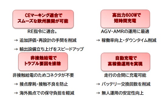 さらに、120W~2000Wクラスの給電により短時間での充電が可能となり、設備全体の稼働率向上に