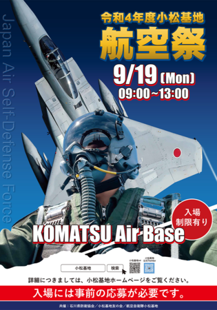 「小松基地航空祭 2022 ('22航空祭 in KOMATSU)」は石川県の航空自衛隊小松基地にて2022年9月19日(月・祝)に開催されます。