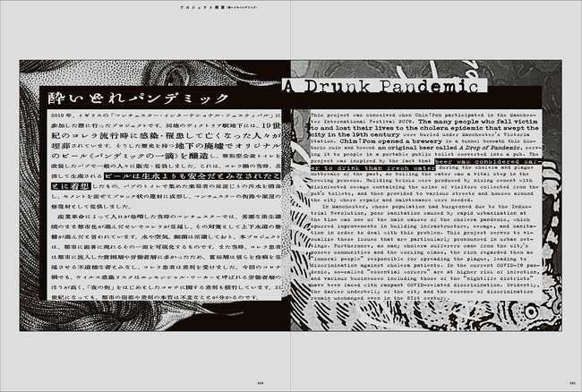 展示風景を80頁にわたりカラーで掲載。森美術館だからこそ実現した、特別な空間をたっぷりお楽しみいただけます。デザインは吉岡秀典+飯村大樹(セプテンバー・カウボーイ)。テキスト頁や資料に至るまで、Chim↑Pom from Smappa!Groupの活動と呼応するかのような、カオスさと緻密さが共存するレイアウトにもご注目ください。
