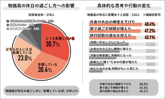 ・全体の84.1%が休日の過ごし方に物価高の影響あり 「外出頻度の低下」や「家で過ごす時間が増加」