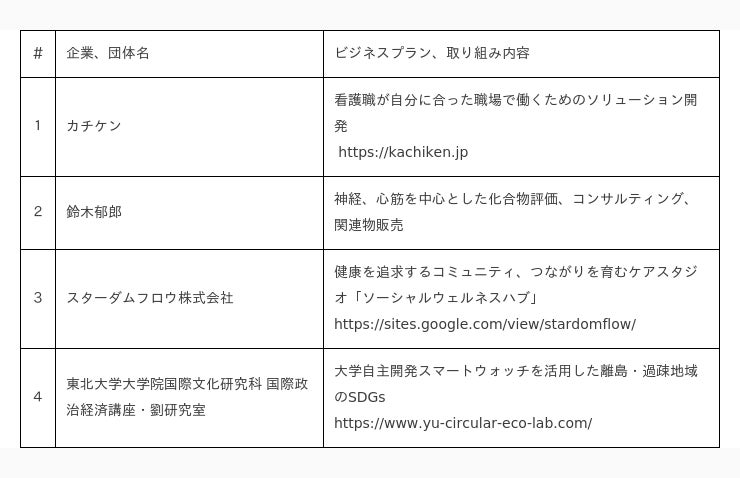 株式会社みらいワークス(本社:東京都港区、代表取締役社長 岡本 祥治、以下「当社」)と、仙台市(市長:郡 和子)は、東北から世界を変えるスタートアップの創出およびエコシステムの強化を推進しています。この度、4プログラムの採択者、合計14者が決定しましたので、お知らせいたします。今後、当社は仙台市と共に、採択者に伴走し、2024年3月に仙台市で開催される成果発表会を実施します。