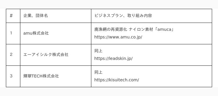 今後、下記採択者には、販路拡大、広報強化、不足分野の人材派遣など、個者のニーズに合わせたカスタマイズ支援を提供します。