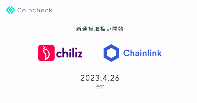 コインチェック株式会社(本社:東京都渋谷区、代表取締役:蓮尾 聡、以下、当社)は、2023年4月26日(予定)より、Coincheckにおいて新たにChiliz(CHZ)およびChainlink(LINK)の取扱いを開始することをお知らせいたします。
