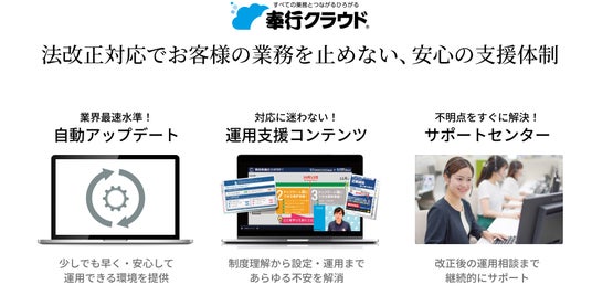 また、今後も続くと想定される法改正に対しても、『奉行クラウド』をご利用いただくことで、業務担当者の皆さまが負担を感じることなく業務に取り組めるよう、環境整備に取り組みます。