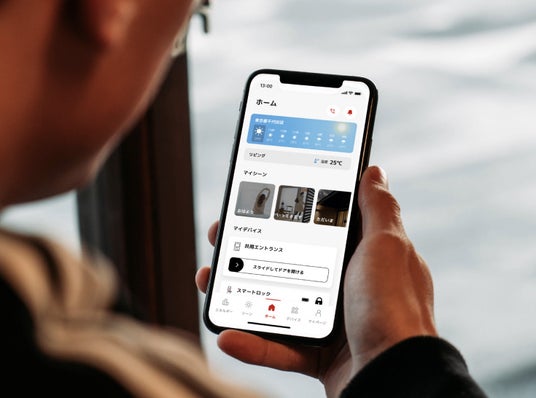 地球環境へ貢献可能な、先進の暮らし。スマートホームサービス「HOMETACT (ホームタクト)※ 1」は、一つのアプリで、スマートロックやエアコン、テレビ、照明、カーテンなど、様々なメーカーの住宅設備・家電をまとめてコントロール可能。また、物