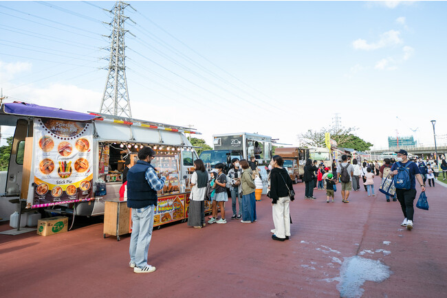 1. 沖縄アリーナの芝生エリアにてキッチンカー等が集い「キングスフードフェス」の開催