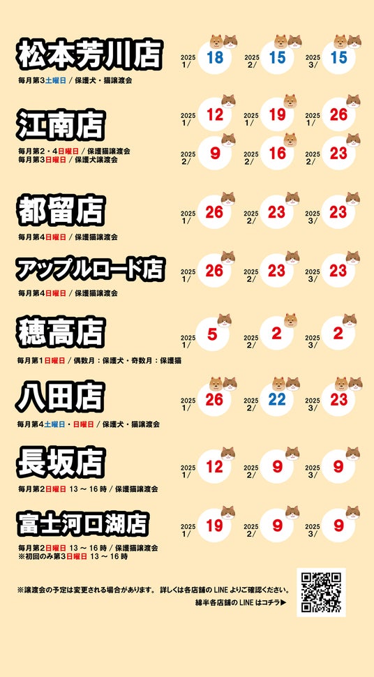 綿半パートナーズ株式会社(長野県飯田市 代表取締役社長:野原勇)はこの度、長野・山梨・愛知県の綿半店舗にて保護犬・保護猫の譲渡会を実施します。