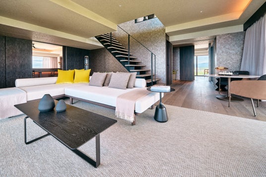 今回初公開となる「ザ・セブンペントハウス」は、ホテル最上階12階から13階に位置し、400平方メートル を超える広々としたメゾネットスイートルームです。石垣島の壮大なパノラマビューを楽しみながら、自然美と調和した贅沢でパーソナルなサンクチュアリをコンセプトに、自由で自律的なホスピタリティを提供します。