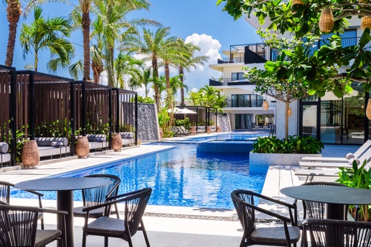 メインダイニングのレストラン「BATIDA」では地元食材を使用したラテンイタリア料理をお楽しみいただき、プールサイドバーではオリジナルカクテルをはじめ、プールシーンにぴったりなトロピカルドリンクやお食事をご用意します。地下フロアのナイトラウンジ「Red.」では200種類のジンやシーシャが楽しめ、ゲスト一人ひとりに合わせたラグジュアリーステイを演出します。