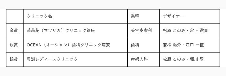 【クリニック部門 設計デザイン賞 金賞】茉莉花クリニック銀座