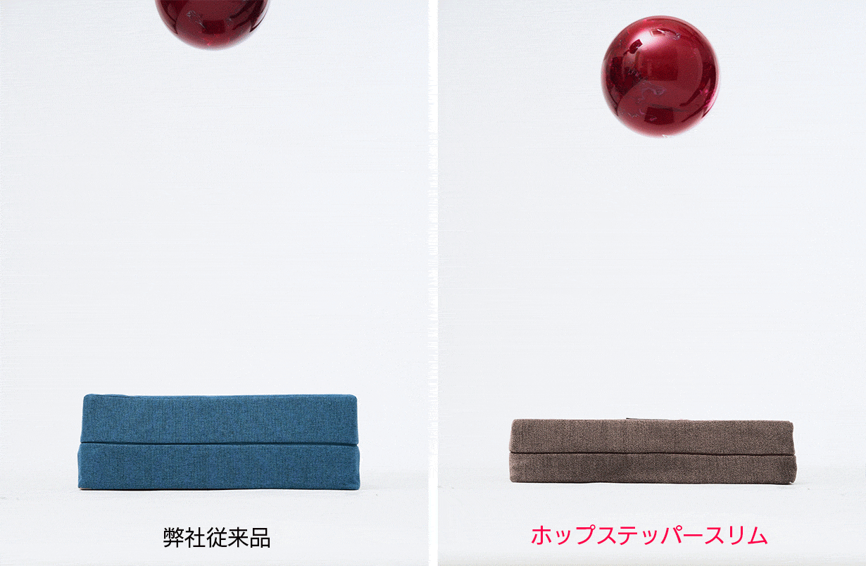 中材はスプリングのような弾力性の高反発ファイバー樹脂が入っているので、弊社従来品よりスリムでありながらも驚きのバウンド力を実現できました!
