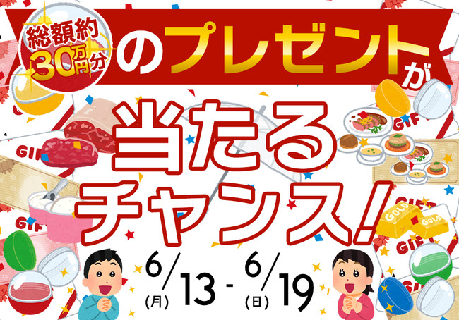 6月13日(月)~19日(日)総額約30万円分のプレゼントが当たるチャンス!